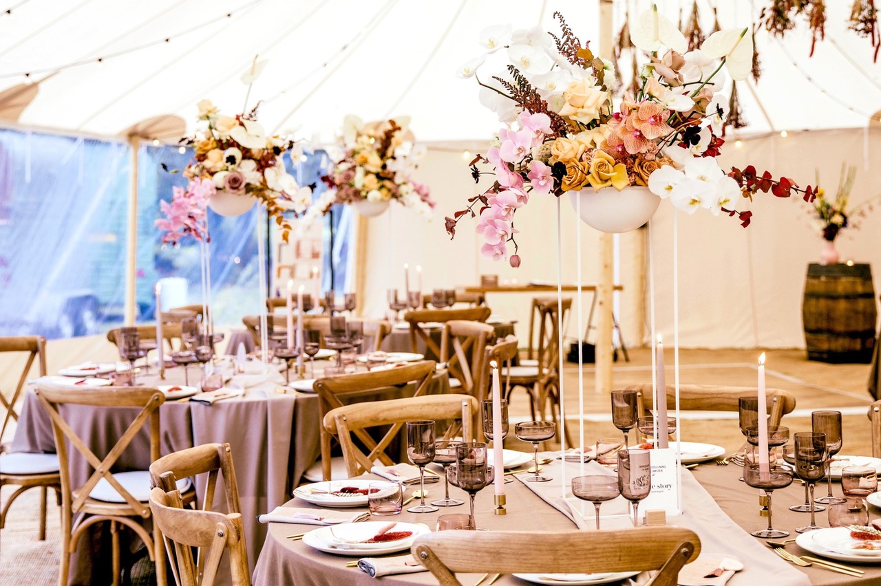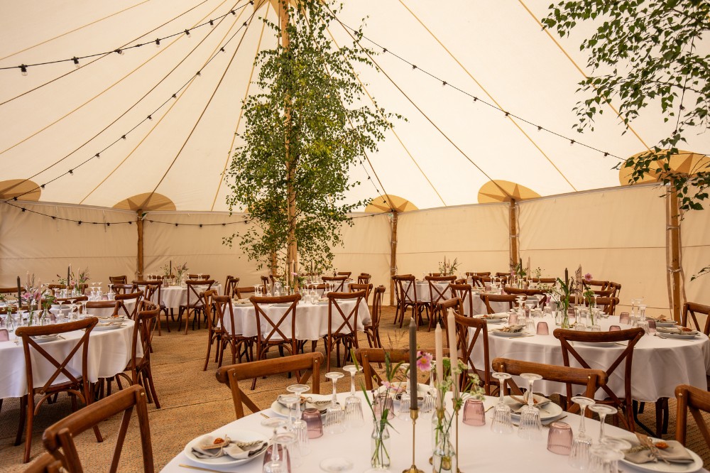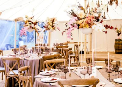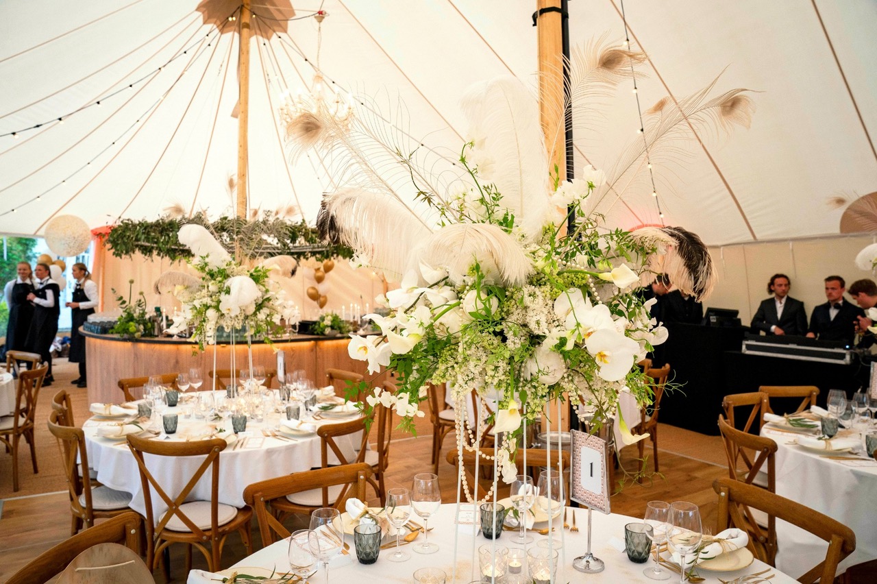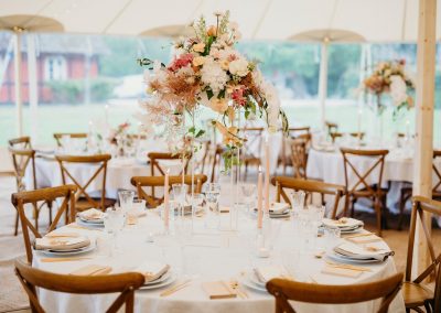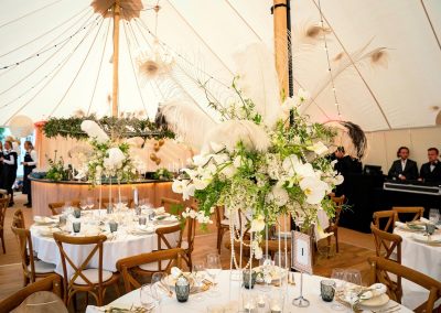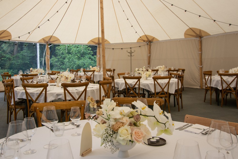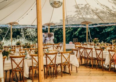 Masteteltet er et unikt telt løsning, som skaber en udtryk der er elegant med dets storslået toppe, de natur farvet duge og massive stolper i træ. Med god plads til fx /buffet, gave bord, dansegulv og band. Vi anbefaler at der ca. kan være omkring 104 personer i 10 x 22 masteteltet. Masteteltet kan (max) rumme op til 140 personer siddende, og har et samlet et areal på 179 kvm.