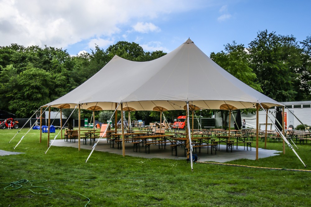 - Kræver 1,5m til fastsurring m/ barduner og pløkker hele vejen rundt om teltet